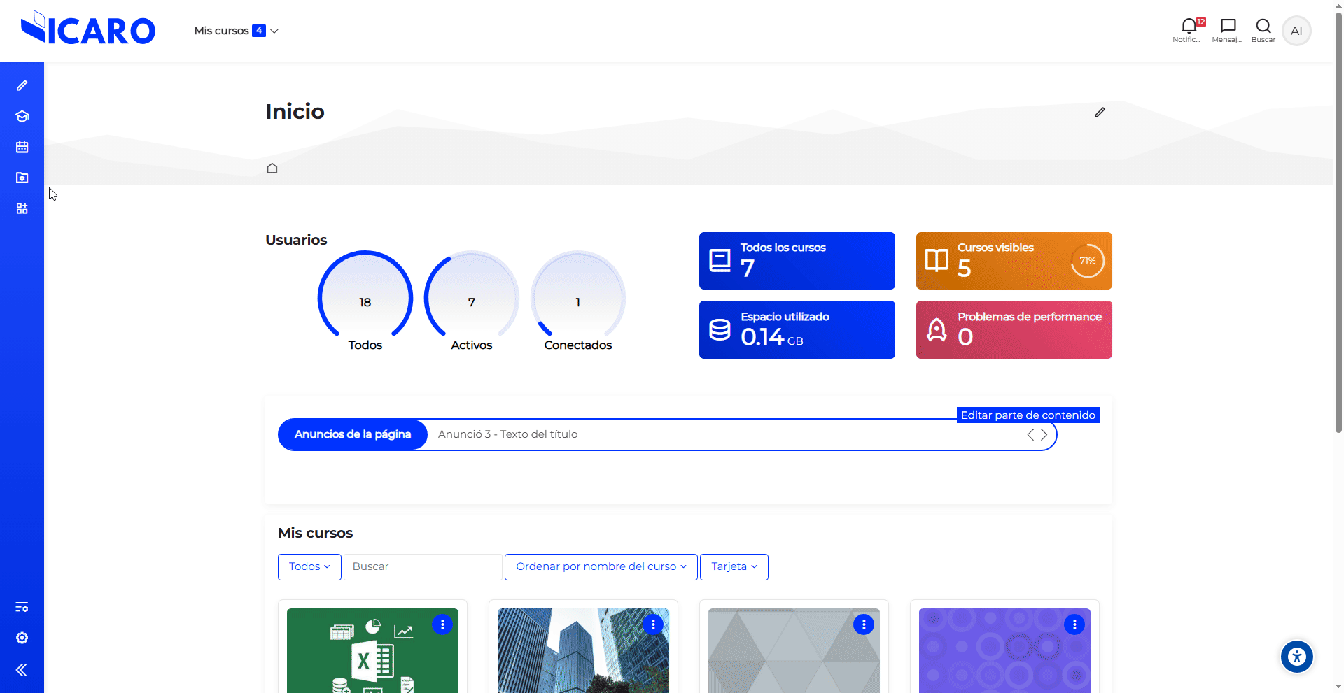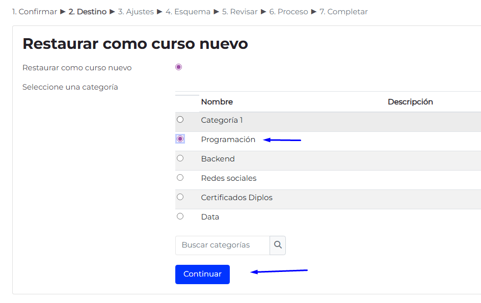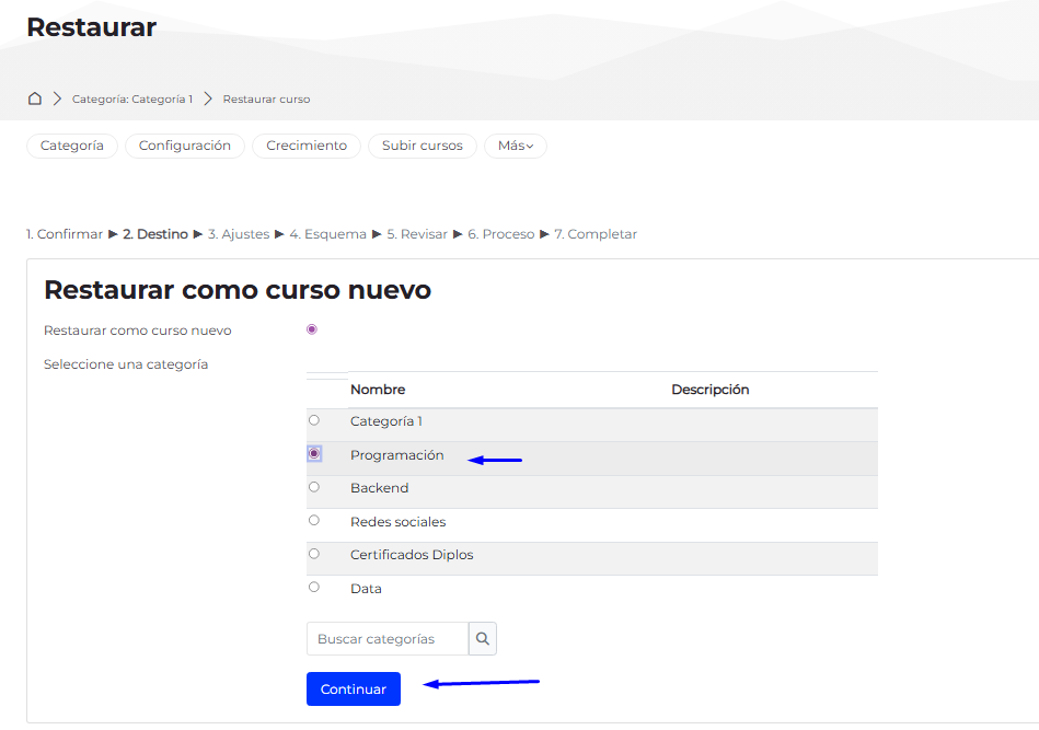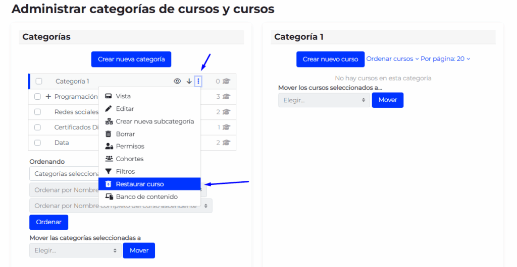 Gestión de cursos y categorías