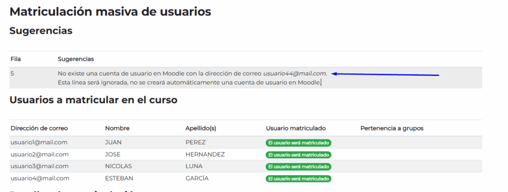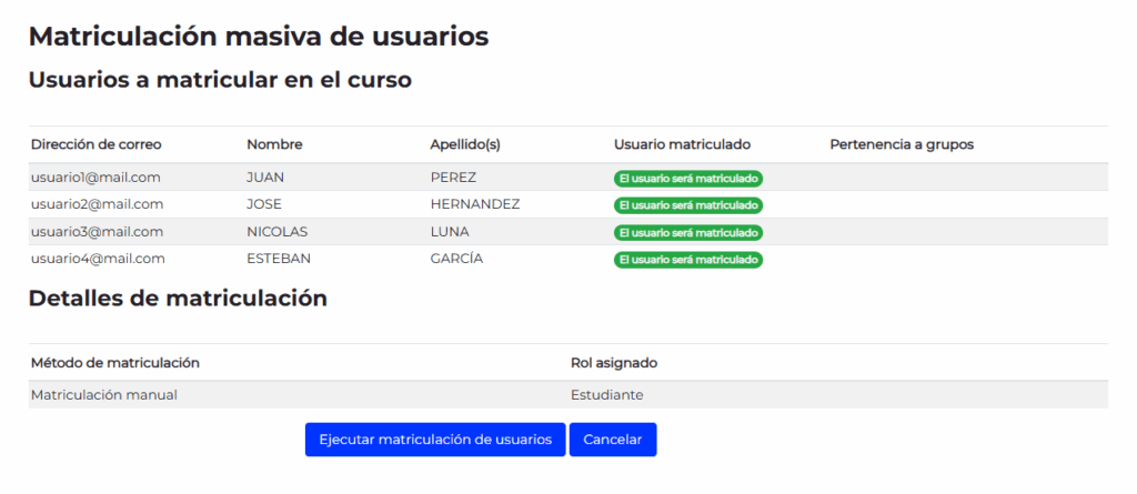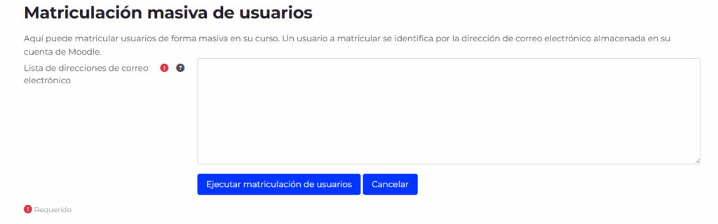 2️⃣ Matriculación masiva dentro del curso usando correos electrónicos